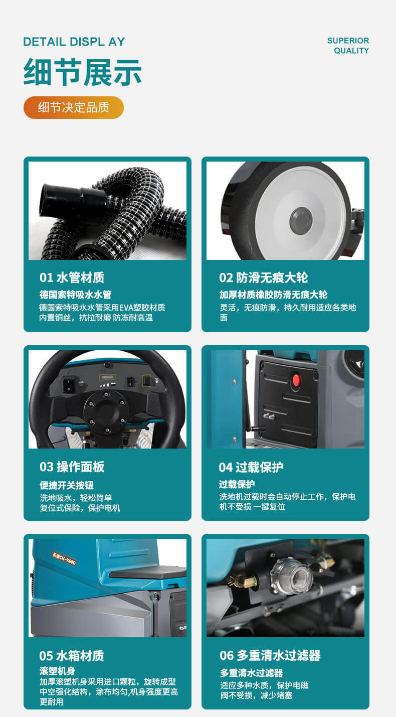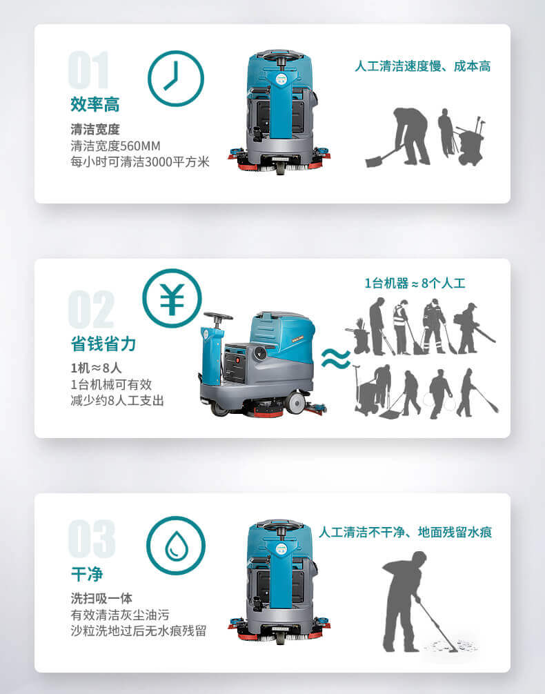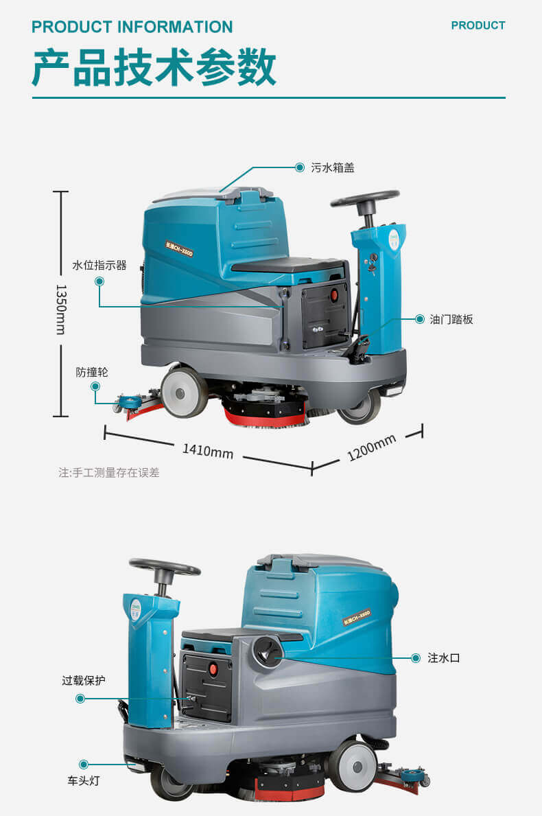 用途:雙刷駕駛式洗地機,洗擦、吸干一次完成,適用于中大面積場所,每小時可清洗5000平方米地面,快速清潔,省時省力,顯著提高工作效率和地面清潔質(zhì)量。